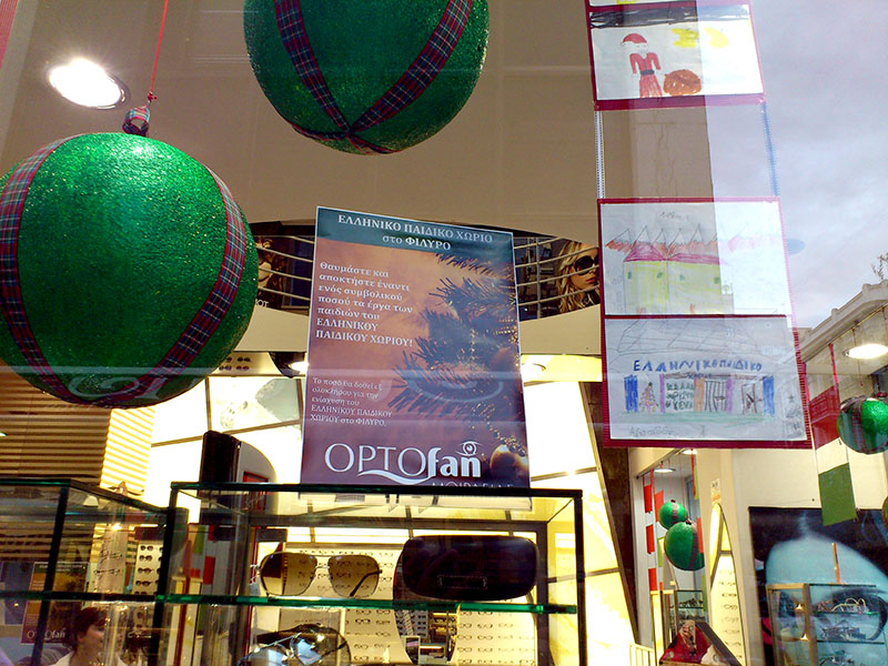 Tο ΟPTOFAN στη φετινή χριστουγεννιάτικη βιτρίνα του φιλοξένησε τις ζωγραφιές των παιδιών του ΕΛΛΗΝΙΚΟΥ ΠΑΙΔΙΚΟΥ ΧΩΡΙΟΥ στο ΦΙΛΥΡΟ.